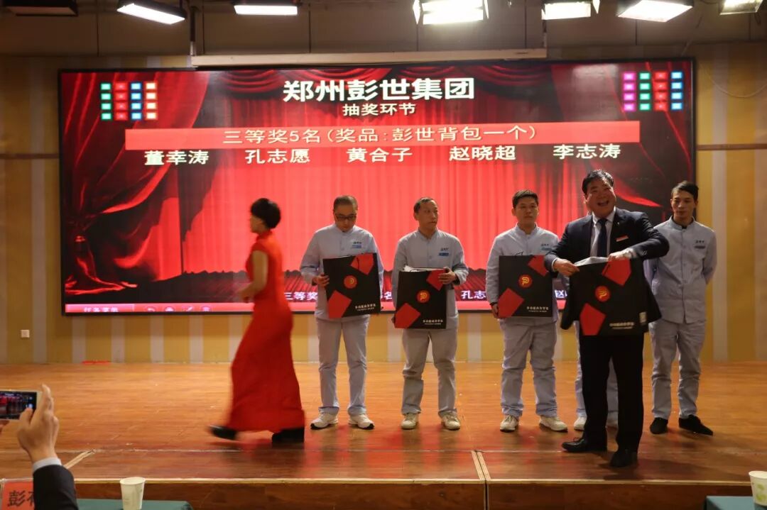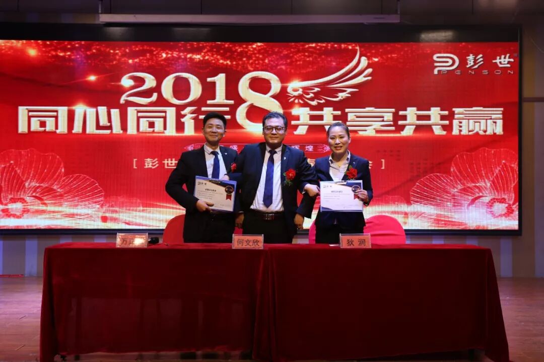 正因为他们的付出,彭世的今天才能如此绚丽,正因为他们的努力,给公司明天的发展奠定了坚实的基础,他们的名字将永远铭刻在企业的功劳簿上,彭世不会忘记他们,接下来进入的是新春团拜会的颁奖环节。