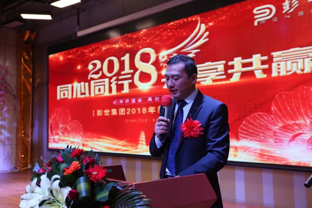 走过往昔,奋斗的汗水刚刚拭去;回首旅途,胜利的笑容正在蔓延;2018年,新起点、新征程,我们将励精图治、开拓创新; 2018年,新向往、新高度,我们将锐意进取、奋勇前行;让我们迈着坚定的步伐,伴着蓬勃的朝气,走进彭世人满载期盼的2018;让我们排除万难,携手共度风雨,谱写彭世更加辉煌灿烂的新篇。